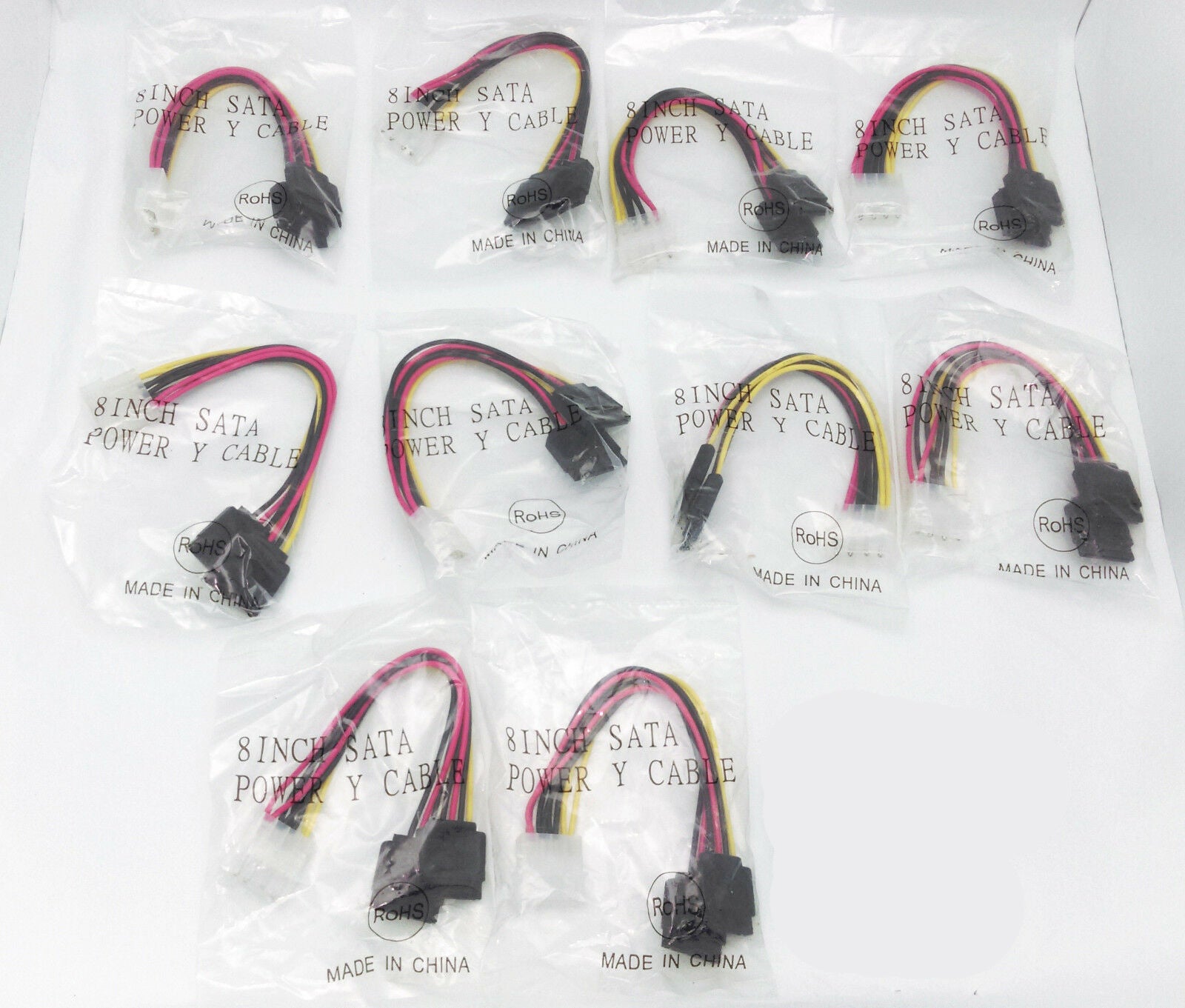 Lot 10: Lead Free 8inch 4pin Molex PC Power Connector-2x SATA HDD Adapter YCable